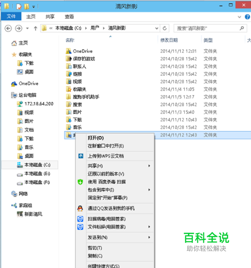 在打开Windows10文件资源管理器打开“C盘(系统安装的那个盘)”下的“用户”文件夹,继续打开在“用户”文件夹下你的系统用户名命名的文件夹,本人现在使用的“清风新影”这个系统用户名