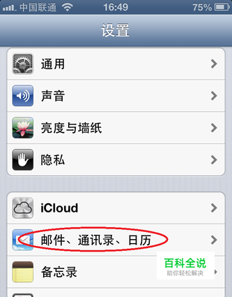 然后在设置里找到“ 邮件、通讯录、日历”,点击进入,如图所示