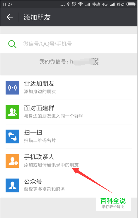 在新界面中点击手机联系人,进行手机号码好友的添加。