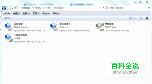 (1)首先是排除接触故障,即确保你的网线是可以正常使用的。然后禁用网卡后再启用,排除偶然故障。打开网络和共享中心窗口,单击窗口左上侧“更改适配器设置”右击其中的“本地连接“或”无线网络连接”,单击快捷菜单中的“禁用”命令,即可禁用所选网络。接下来重启网络,只需右击后单击启用即可。