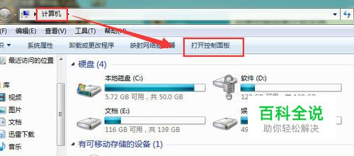 打开“我的电脑/计算机”,选择“打开控制面板”,进入控制面板的主页面。
