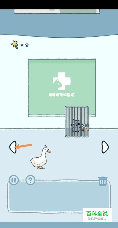 在左边,将鸭饲料拖动到鸭身上,然后将花洒拖动到鸭便便处。