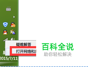 找到桌面右下角的无线图标,点击鼠标右键呼出菜单,选择“打开网络和共享中心”