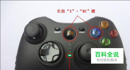 第一次使用小米手柄需与小米电视配对,长按手柄上的“X”+“MI”打开电源,直到手柄最下方指示灯快闪就可以松开按键