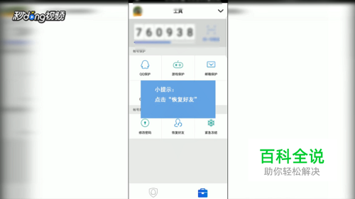 然后在QQ安全中心主界面点击右下角工具箱,选择“恢复好友”,点击立即开始