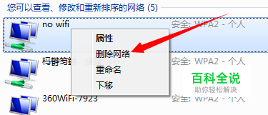 接着来试下密码是否为真的,在无线网络管理中把这个WIFI删除。
