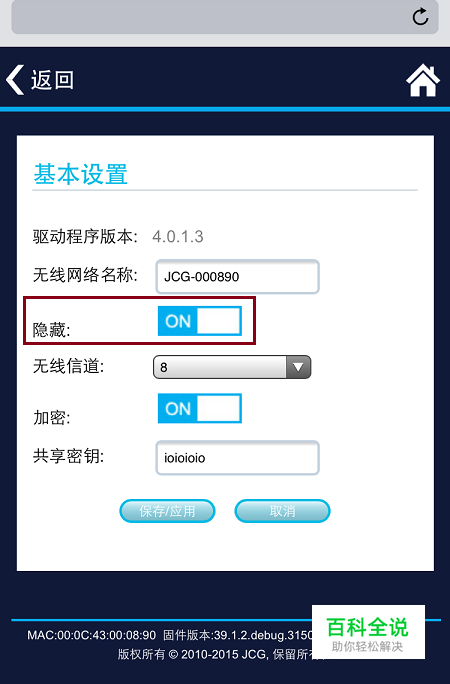 我们首先设置路由器隐藏WiFi信号,根据路由器手册,或者路由器背面标贴的提示,打开浏览器进入路由器设置页面。进入“ 无线设置”-“ 基本设置”,打开“ 隐藏”开关就行了。