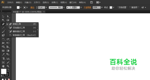 打开AI软件,新建一个空白画板,请选中左侧工具栏中的钢笔工具。