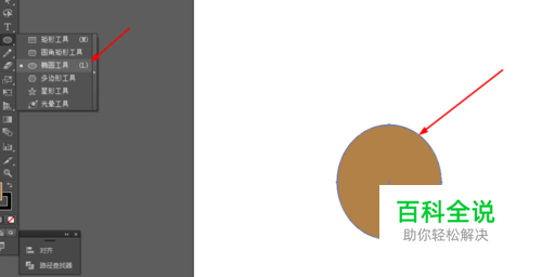 选择椭圆工具,画一个椭圆图形,并填充颜色,如图所示