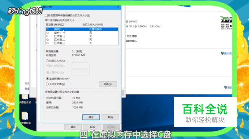 选择“C盘”,选择“无分页文件”,之后选择“D盘”,选择“自定义大小”,将初始大小和最大值都改为“2000”,设置完成点击“确定”。