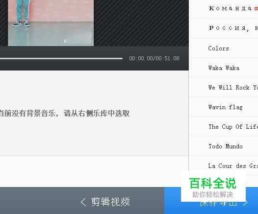 转到添加背景音乐的界面。在这里不打算添加音乐,我们直接点击:保存导出。