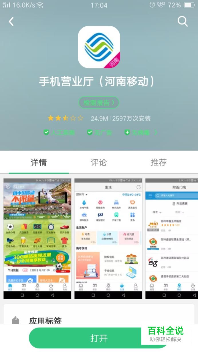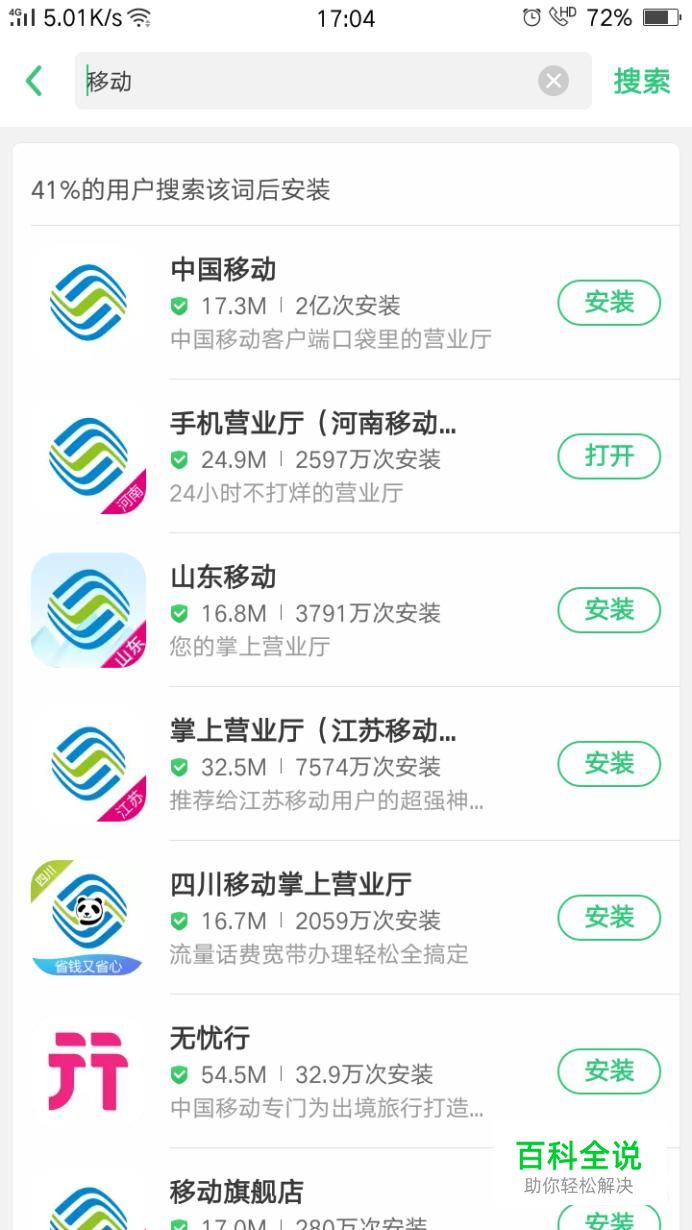 首先在手机软件商店搜索下载“当地的移动APP”,我们以“河南移动”为例。