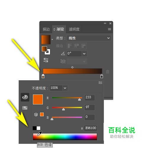 接着设置渐变颜色,鼠标双击渐变滑块即可调出颜色面板,从中选择颜色。