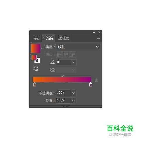 渐变效果设置完成。把面板关闭。此时,工具栏下方的填充色块已自动显示刚才设置的渐变色。