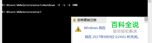 方法二:在dos命令行中用命令来关机: 1、首先按下‘win+R’打开运行窗口,然后输入‘cmd’,并回车。 2、在命令窗口中输入‘shutdown -f -s -t 30’,表示30秒后关机,按下回车之后,会弹出提示多久后会关机。【若要查看这些参数是什么意思,可以在命令行中输入‘shutdown/?’来查看。】 3、也可以在‘win+R’打开的运行窗口中直接输入‘shutdown -f -s -t 30’,然后按下回车来关机。 说明: -f是强制关闭正在运行的程序; -s是关闭计算机; -t设置多少秒后关机; 若是要取消关机的话,可以输入'shutdown -a',然后按下回车来取消。