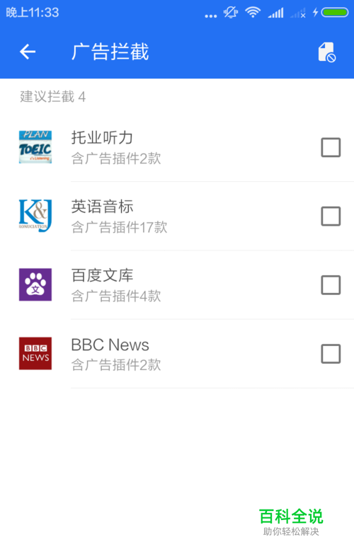 广告拦截也跟广告举报差不多。根据需要选中广告软件,点击一键拦截。但由于个人手机设置问题,管家可能提示你开启流量监控,开启即可。