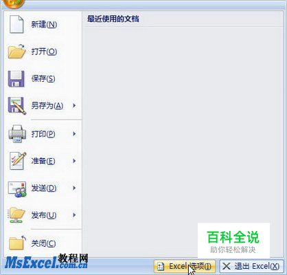 第1步,打开Excel2007工作簿窗口,依次单击Office图标→“Excel选项”按钮,如图2009061210所示。 图2009061210 单击“Excel选项”按钮