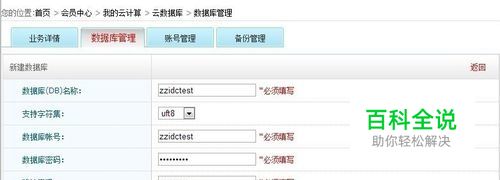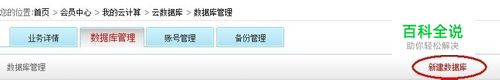 点击新建数据库 开始创建数据库,填写数据库名称、帐号名称、密码和备注。