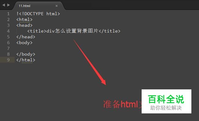 首先我们打开sublime text软件,新建一个html页面,然后在在页面中添加html的基本结构,如下图所示