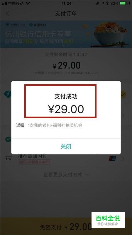 首先我们通过美团购买食物是可以获得一次抽奖机会的,如下图所示。