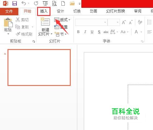 打开PPT之后在菜单里找到插入选项,如图所示: