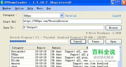 2、进入某作者首页,粘贴该网址到软件url处,可以下载该作者的所有图片。然后开始下载。
