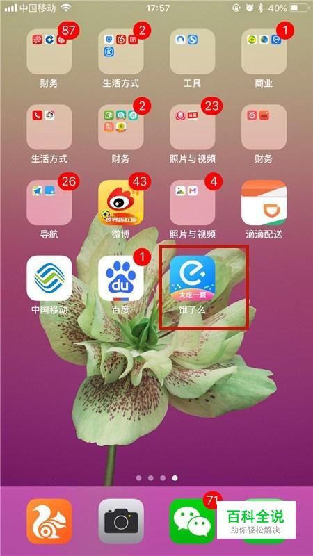 首先在我们的手机桌面上找到饿了么并点击它,如下图所示。