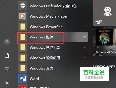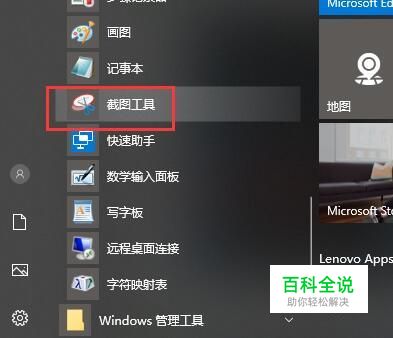首先点击开始,然后找到window10附件,然后再将文件打开,接着找到截图工具,直接选择即可。