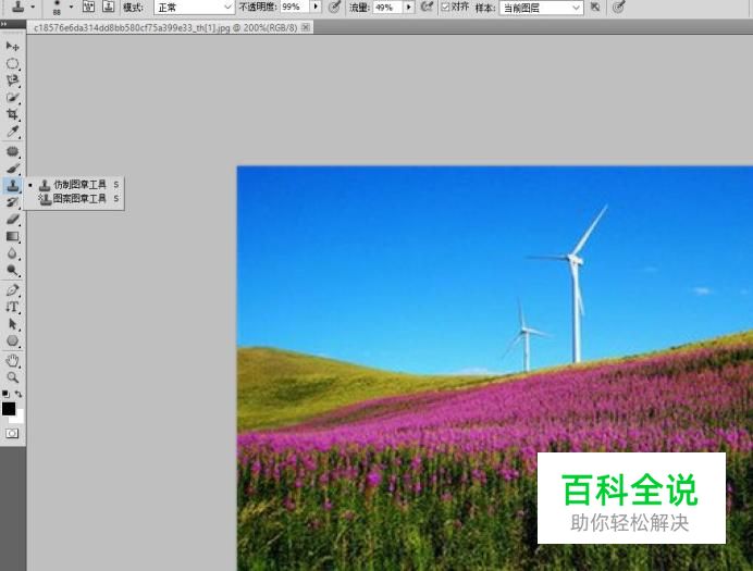 点击工具栏中的仿制印章工具,设置好仿制印章工具的参数。