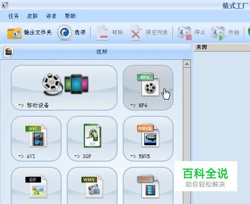 启动软件,进入到操作界面中,再点开“视频”,选择:MP4