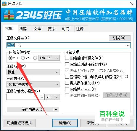 进入之后,将其设置为“Zip”格式,系统默认的是“tar”格式,然后点击确定即可将其压缩。