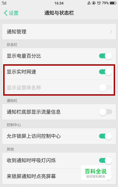如果之前有开启“显示运营商名称”,那就没有办法打开“显示实时网速”的开关,只能选择它们中的一个开启哦。