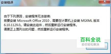 win7系统安装office2010时,出现安装错误提示框,首先需要安装msxml6.0程序,如果安装msxml6.0后,依然提示错误,则需要按照以下步骤操作