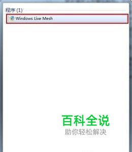 下载好Windows Live软件包之后,双击开始安装,在“选择要安装的程序”界面中勾选“Windows Live Mesh”就可以将它安装到电脑中了。安装好之后,点击“开始”按钮,在搜索框中输入“Mesh”,然后就可以在搜索结果列表中看到“Windows Live Mesh”,点击启动它。
