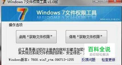 Windows 7的TrustedInstalle权限的激活方法一: 1、用鼠标右键点击要操作的文件或文件夹,依次进入“属性→安全→高级→所有者→编辑”,在“将所有者更改为”栏中选择登录系统的管理员用户,再选择“应用”,一路确认,回到文件夹属性窗口。 2、然后设置文件或文件夹的TrustedInstaller权限,进入“安全”选项卡,选择“编辑”,在权限窗口上栏中选择登录系统的管理员用户,在下栏中选择“允许”,一路确认,至此就拥有了该文件或文件夹的管理权限。方法二: 借助小工具“Windows 7文件权限工具”。双击这个工具,选择“启用‘获取文件权限’”选项,完成安装。如果需要取得某文件或文件夹的TrustedInstaller权限,就用鼠标右键点击该文件或文件夹,再选择“获取文件权限”,就可以获得TrustedInstaller权限了。