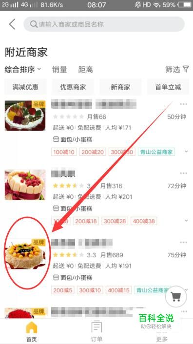 在外卖界面选择一家想要订外卖的商家,点击进入,如图所示。