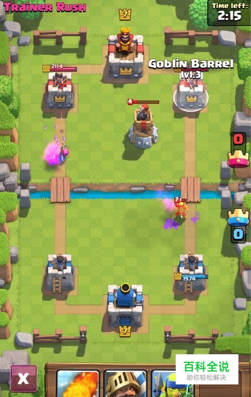 这样做的好处就是避免哥布林扎堆被对方法师/炸弹人秒清。没有任何副作用。可以称之为正确用法。 好了科普到此结束,现在开讲逼格部分,大家都知道桶的最大敌人就是80%卡组都会带的箭雨,箭雨秒解桶相信在座各位只要网络不差的都能做到,一来一回箭雨方能赚到一费,随着箭雨越来越普及,桶的出场率也是越来越低,从最开始的首页局十局九桶到现在的几乎销声匿迹(当然中间桶被削弱过一次,但最大原因还是箭雨的普及)。 那么箭雨究竟是不是桶的康特呢,楼主想说:是,也不是,这游戏毕竟不是一个纯粹的卡牌游戏,万一人家箭雨秒解射歪了呢,那么谁康特谁。 看到这里有些选手可能要掀桌子了,去你妹的你射歪个箭雨给我看看。莫急,下面我们就通过两场实战录像截图来教大家如何让对方慌到射歪。 录像来自2100-2200分段,对手都是大本6级,卡组平均等级246到357之间,在这分段,他们的大本卡组等级都处于食物链底端,那技术肯定不错,换句话说,对手肯定不傻。 先来看看第一局。楼主在游戏开始20秒左右,丢出了第一个桶,丢的时候稍微往下拉了一点,3个哥布林扎堆。给对方一种这厮桶用的好水的感觉。