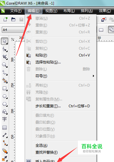 打开CDR,新建一个文件,在菜单找编辑,插入条码。