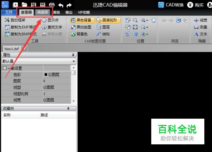 用CAD编辑器打开图纸文件,打开后默认“查看器”界面,这里请点击切换到“编辑器”菜单界面。