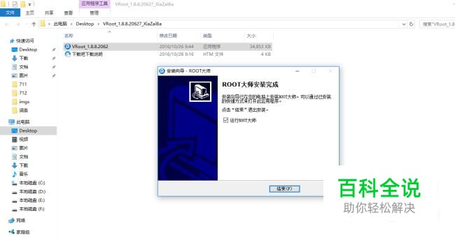 将root大师安装到电脑上后,勾选上运行root大师然后关闭。