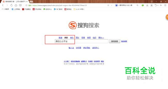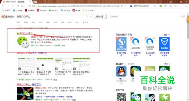 搜狗搜索上搜索“微信公众平台”