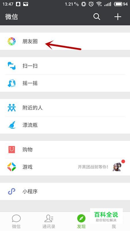在“发现”中,选择“朋友圈”