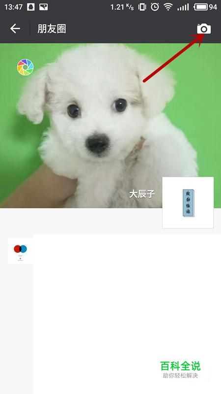 进入朋友圈后,点击“相机”进入信息编辑页面。