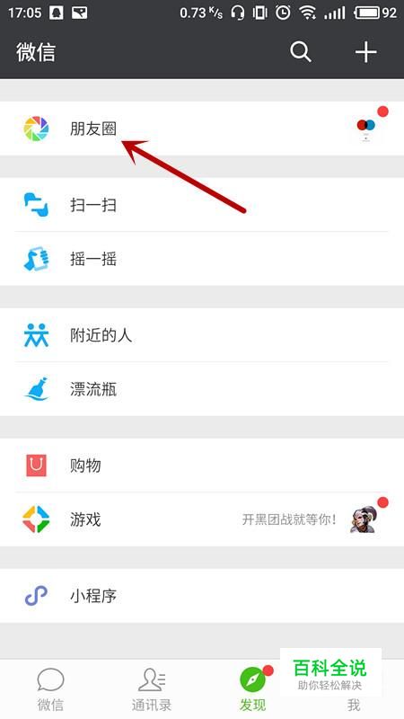 在微信发现中,点击“朋友圈”进入。