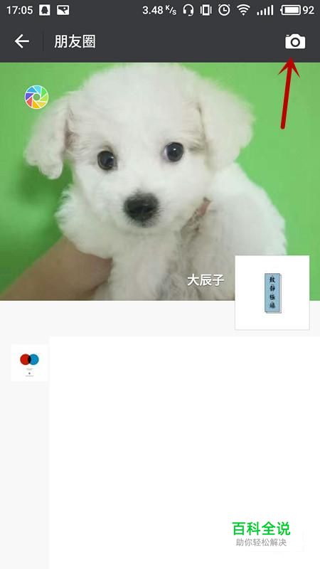 在朋友圈界面,正常来说是点击“相机”发送信息,要想发送纯文字的信息,就“长按相机”