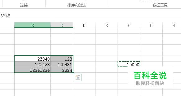 完成之后复制10000所在的单元格,然后左键选中之前要换算的数据所在单元格区域。