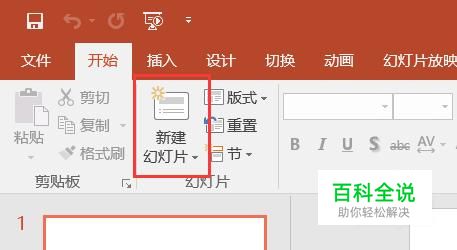 单击开始选项卡,在开始选项卡功能区,幻灯片组单击新建幻灯片。