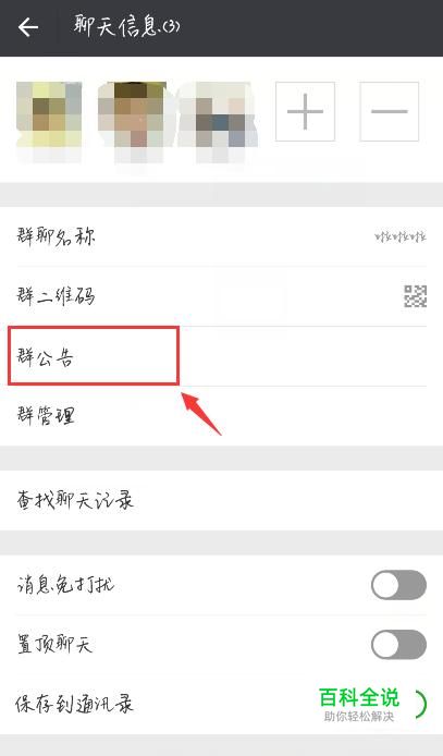 在“聊天信息”中可以看到“群公告”,在微信群聊中只有群主才可以编辑群公告。