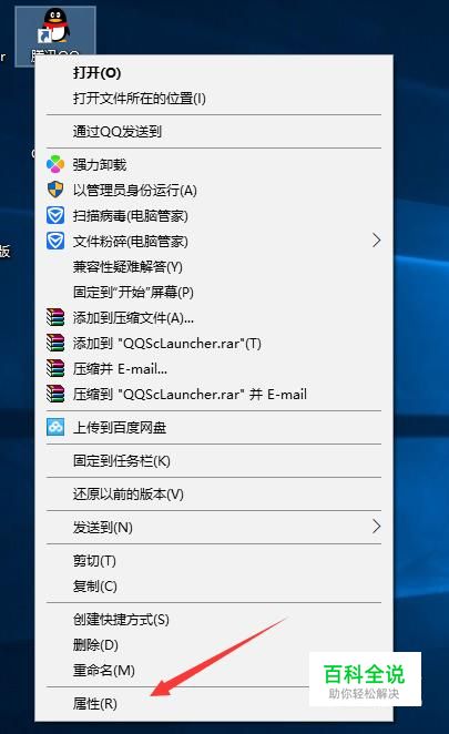 这里以腾讯QQ为例,首先右键单击QQ,然后选择属性。