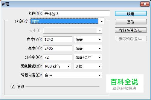 新建一个文档,将宽度与高度设为:1242*2405/分辨率为72像素/英寸